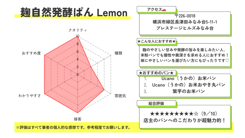 グルテンフリーでもおいしさを妥協したくない方、体にやさしいパンを日常に取り入れたい方にとって、麹自然発酵ぱん Lemonは間違いなく心強い存在だと言えるでしょう。
