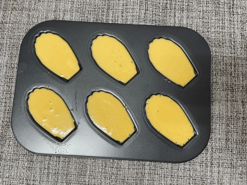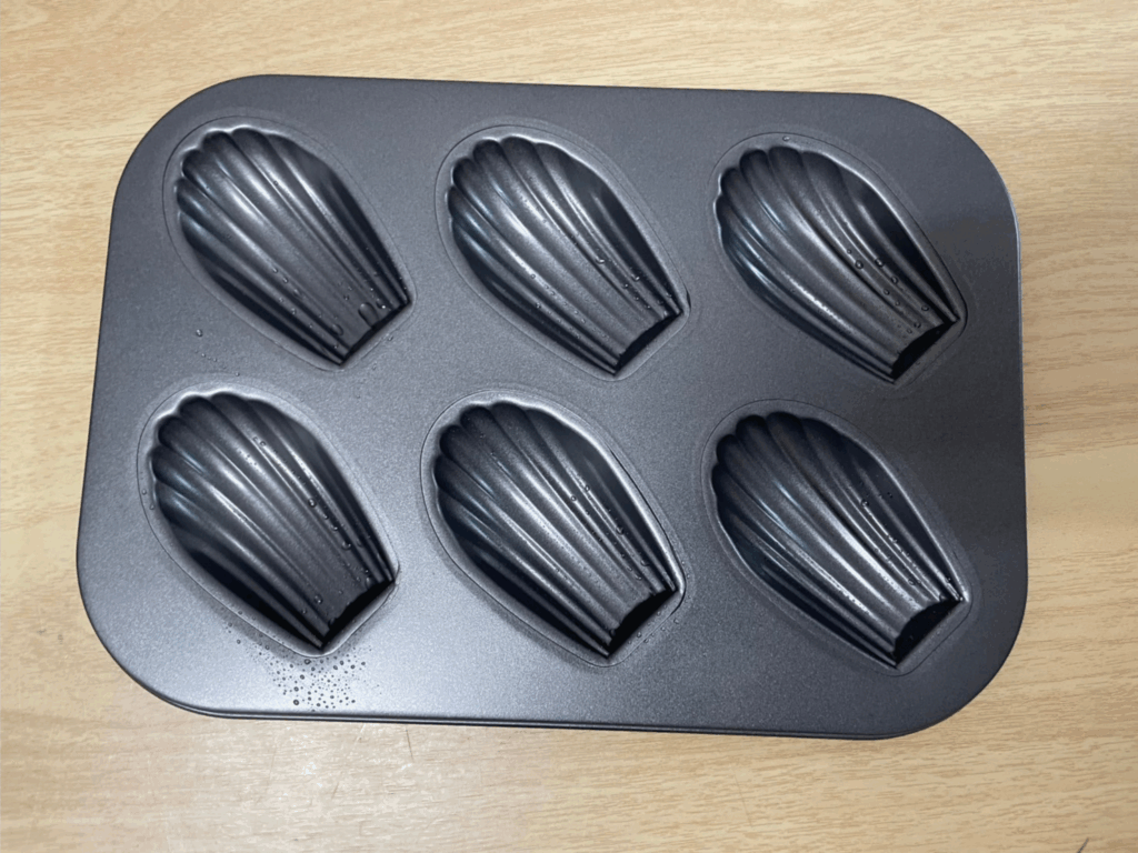 マドレーヌの型に油を塗り、オーブンを180℃に予熱します。