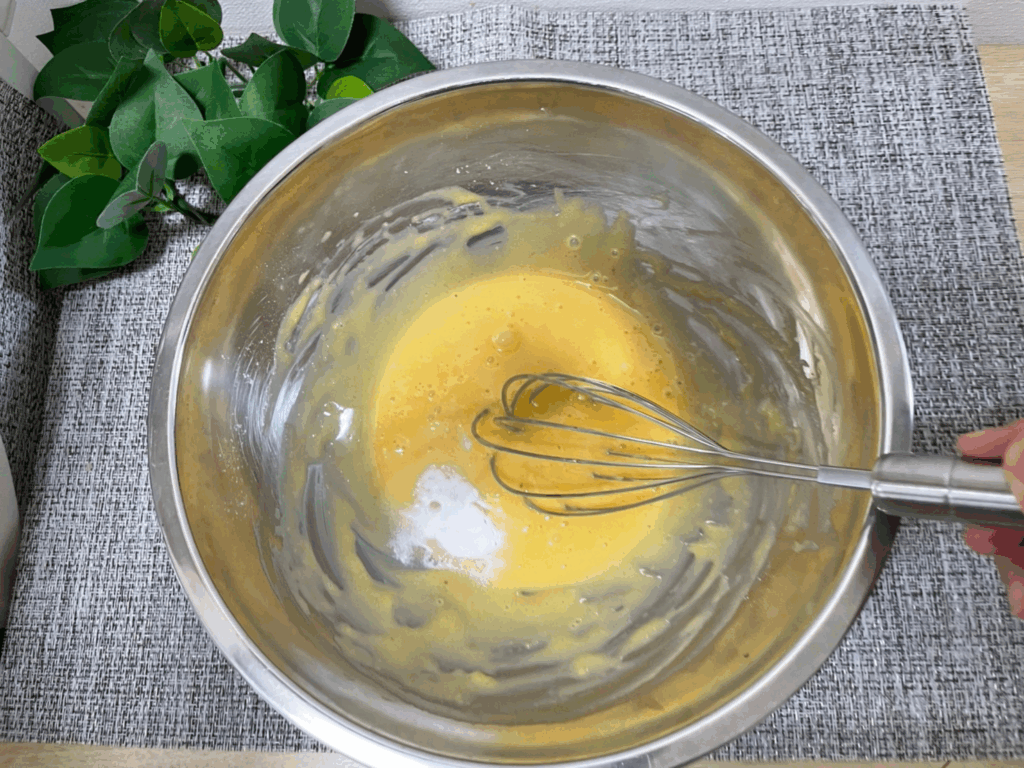ただし、卵と砂糖をよく混ぜて空気を含ませることで、ふんわりした食感に仕上がります。