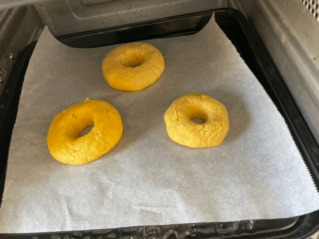 あらかじめ200℃で予熱したオーブンに、ドーナツ生地を入れて焼きます。家庭のオーブンによって多少誤差があると思いますが、大体18分から20分程度焼きます。