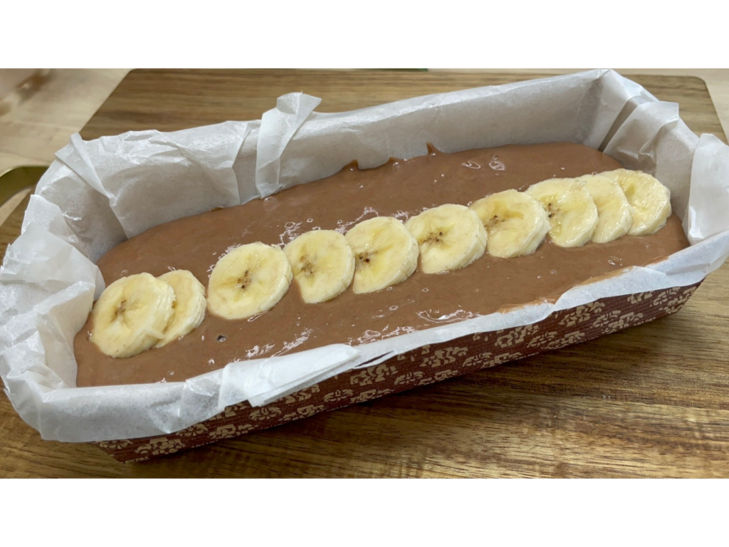 米粉・バナナ・ココアという身近な材料で、特別な技術がなくても作れる簡単ココアバナナケーキ。