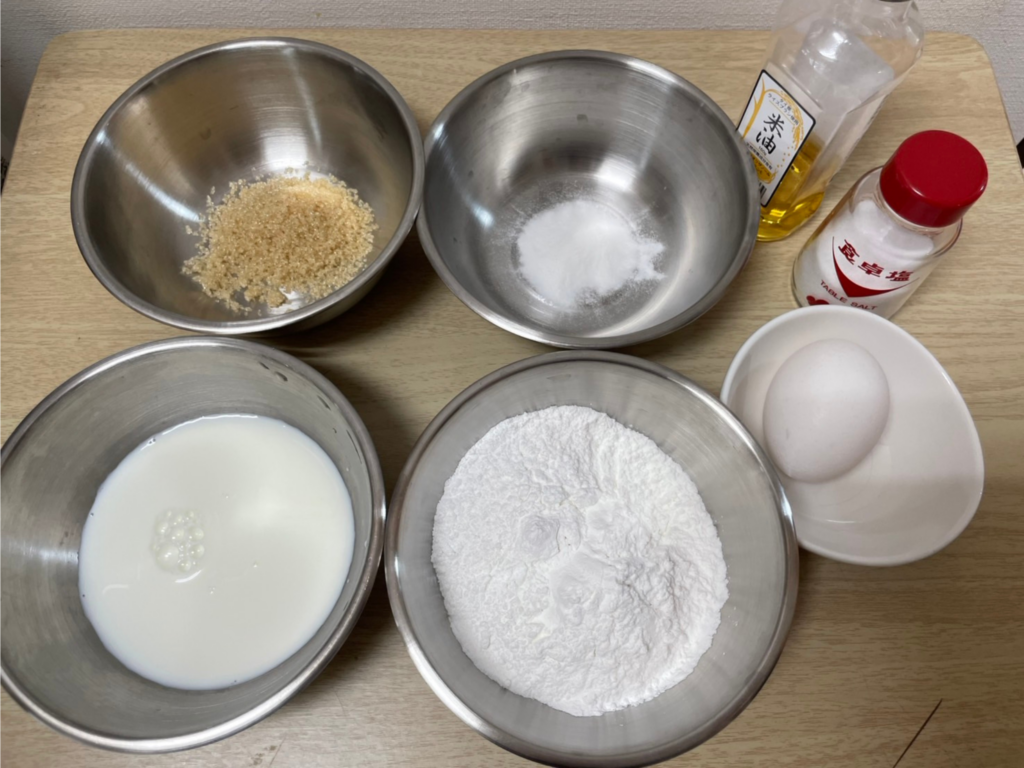 さらに、豆乳は無調整豆乳がおすすめ。調整豆乳は甘味料が入っているため焼き色がつきやすく、香りが濃く出すぎる場合があります。無調整の方が素材の味を邪魔せず、米粉の軽さをそのまま引き出してくれます。