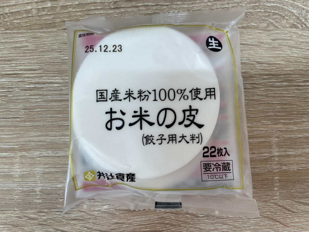 今回は近所の【ロピア】で購入した井辻食産さんの国産米粉100%使用お米の皮(餃子用大判)を使用します♡