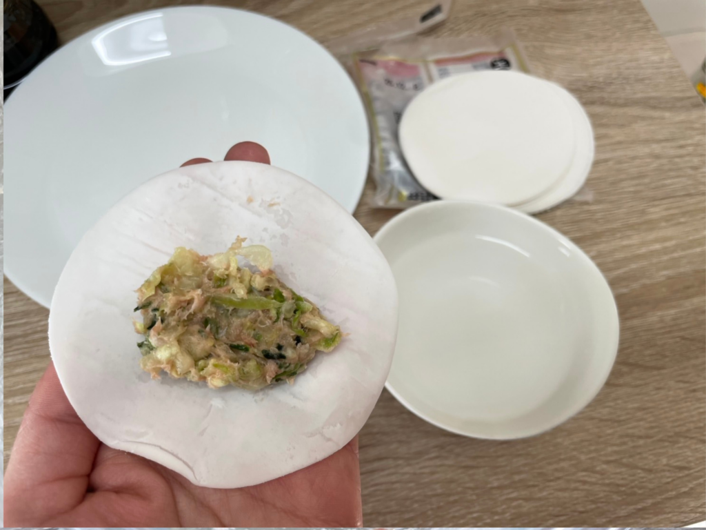 一方、小麦の餃子皮よりやや乾きやすく、包むときには少し工夫が必要ですが、水をほんの少し指でつけて閉じれば問題ありません。