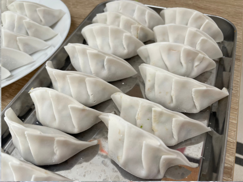 米粉の皮で作った餃子、家族みんなで食べましょう♪