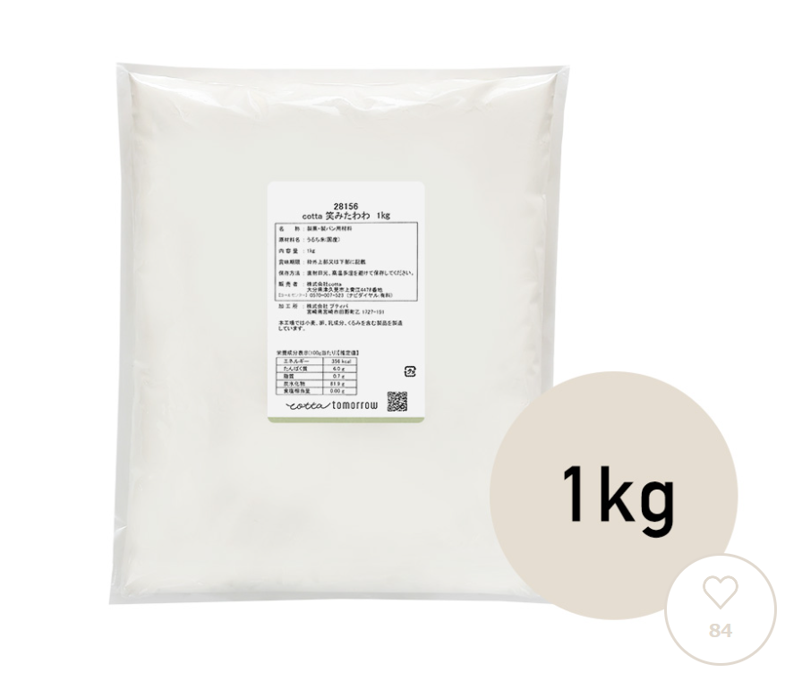 実際に使ってみると、粒子はややしっかりめでサラサラというよりは少し存在感のあるタイプ。そのため、シフォンケーキや繊細なスポンジケーキよりも、蒸しパン・クッキー・パンケーキ・お好み焼きなど、日常使いのレシピに向いています。特に揚げ物の衣やとろみ付けとして使うと、軽やかな仕上がりになり油の吸収も控えめ。普段の料理に気軽に取り入れられる点が魅力です。