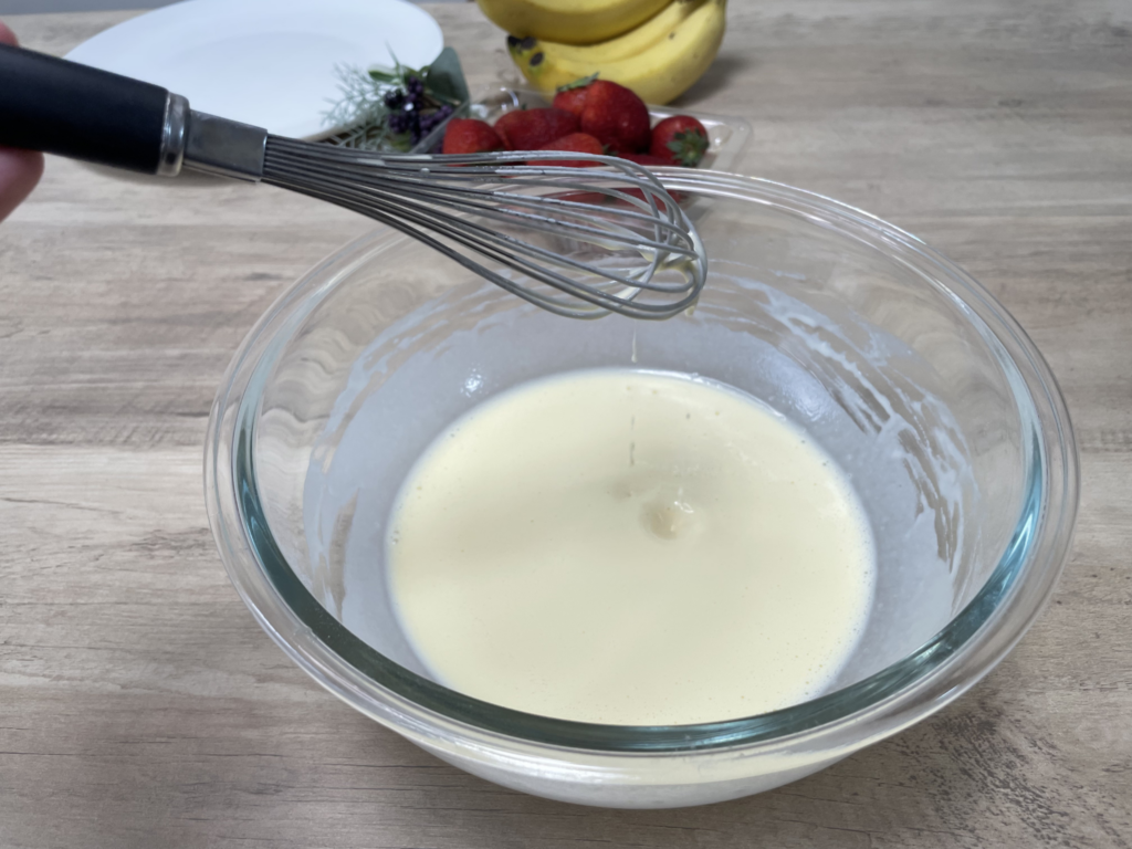 今回、電子レンジで作る米粉クレープに挑戦してみましたが、まず驚いたのはその手軽さです。フライパンを使わないため火加減を気にする必要がなく、混ぜて加熱するだけで簡単に生地が完成しました。これまでクレープ作りに苦手意識があったのですが、「こんなに簡単にできるんだ」と感じるほど失敗しにくい印象でした。