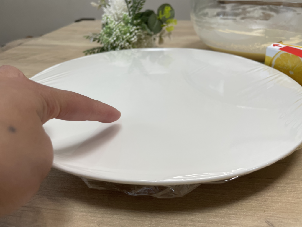 ■ STEP3【お皿にラップを張って生地をひろげよう】