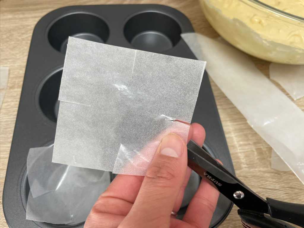 マフィン型を使う場合、型にクッキングシートを敷いて生地を流し込むことが多いですが、シートに少し工夫をするだけで仕上がりがきれいになります