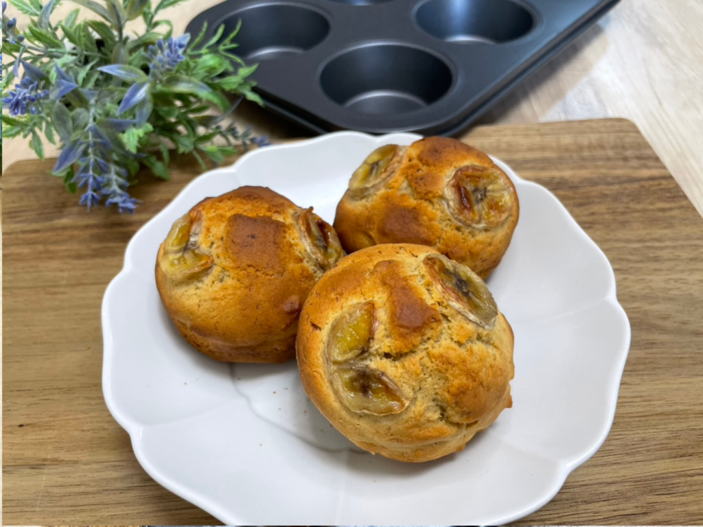 また、柔らかくなったバナナは生地になじみやすく、しっとりした食感のマフィンに仕上がります。