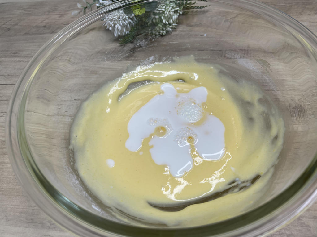 ※この時に、生地はなるべく薄く均等に流し入れると、完成のビジュが上がります!